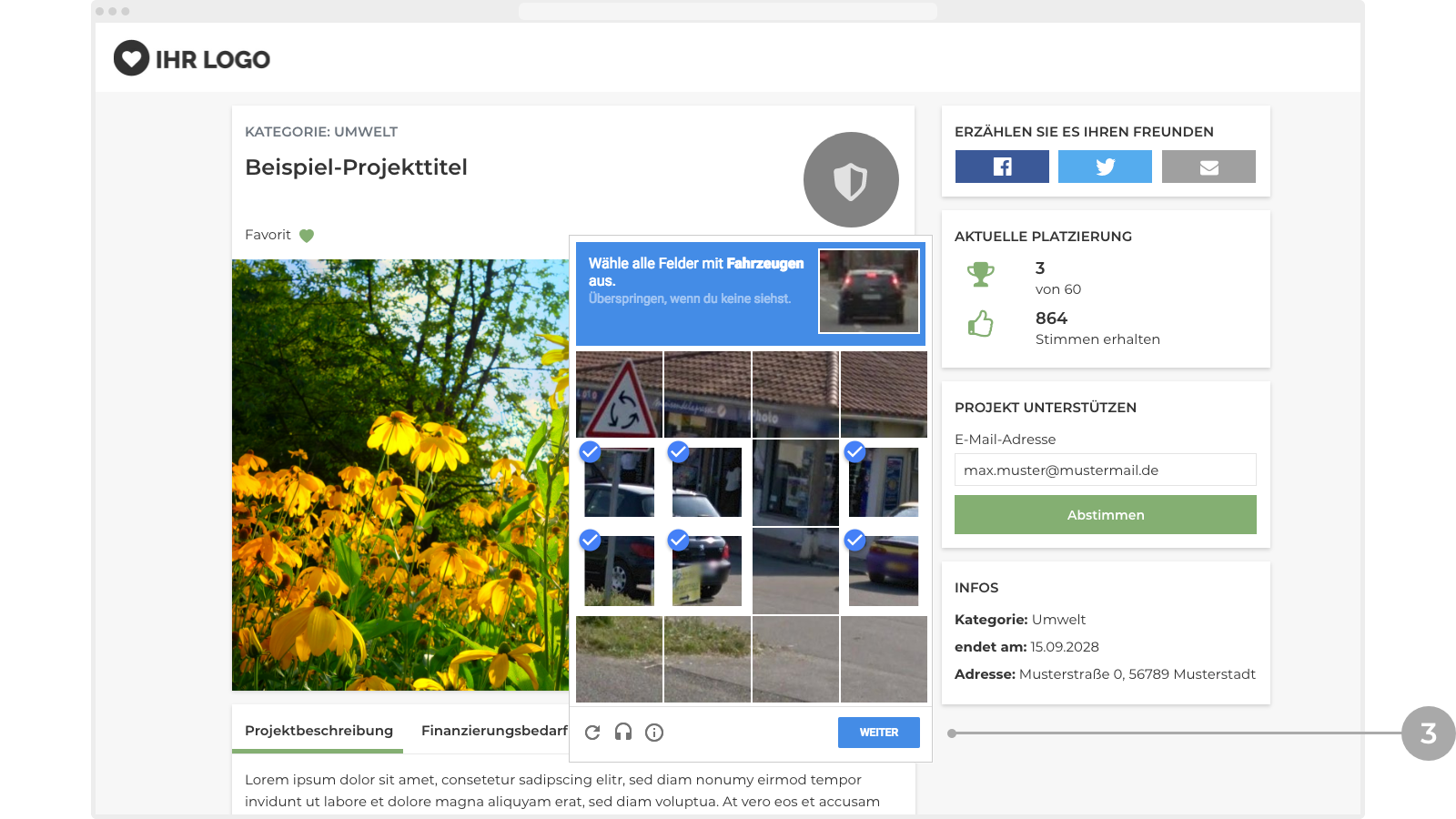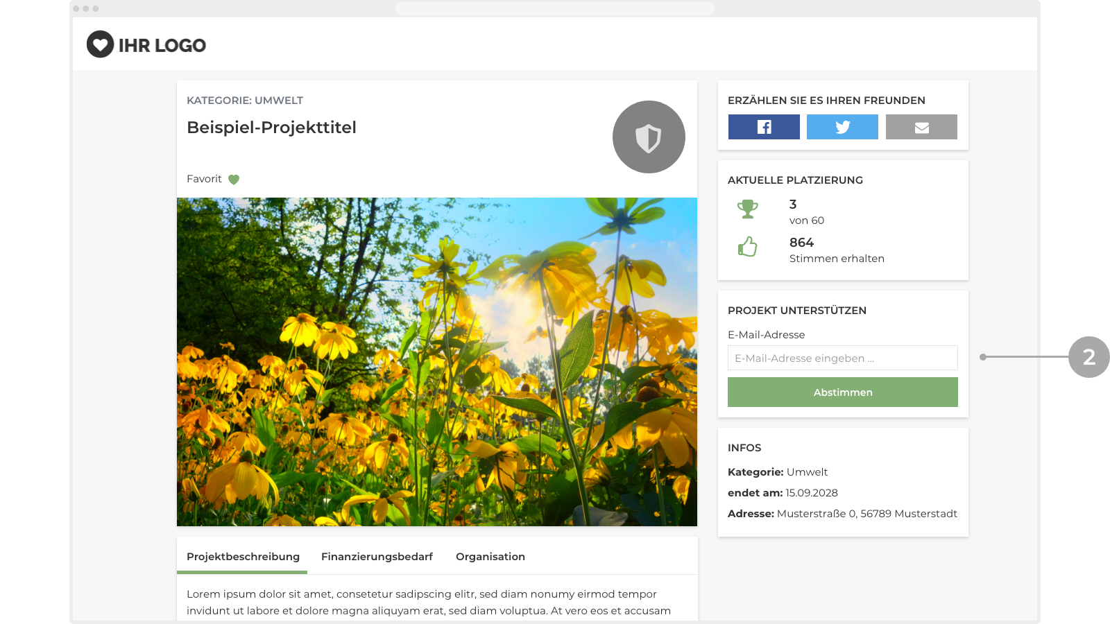 Suchen Sie sich ein Projekt von der Projektübersichtsseite aus, das Sie unterstützen möchten. Klicken Sie dazu auf den Button „Projekt ansehen und unterstützen“. Damit gelangen Sie auf die Detailseite des Projekts.